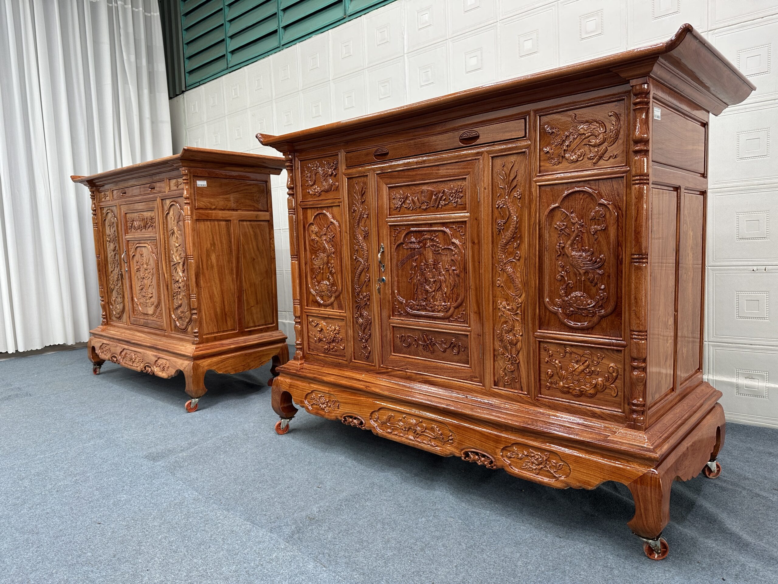 Kích thước sản phẩm: Tủ thờ lớn, chạm khắc cầu kỳ sẽ có giá cao hơn mẫu nhỏ gọn, tối giản.