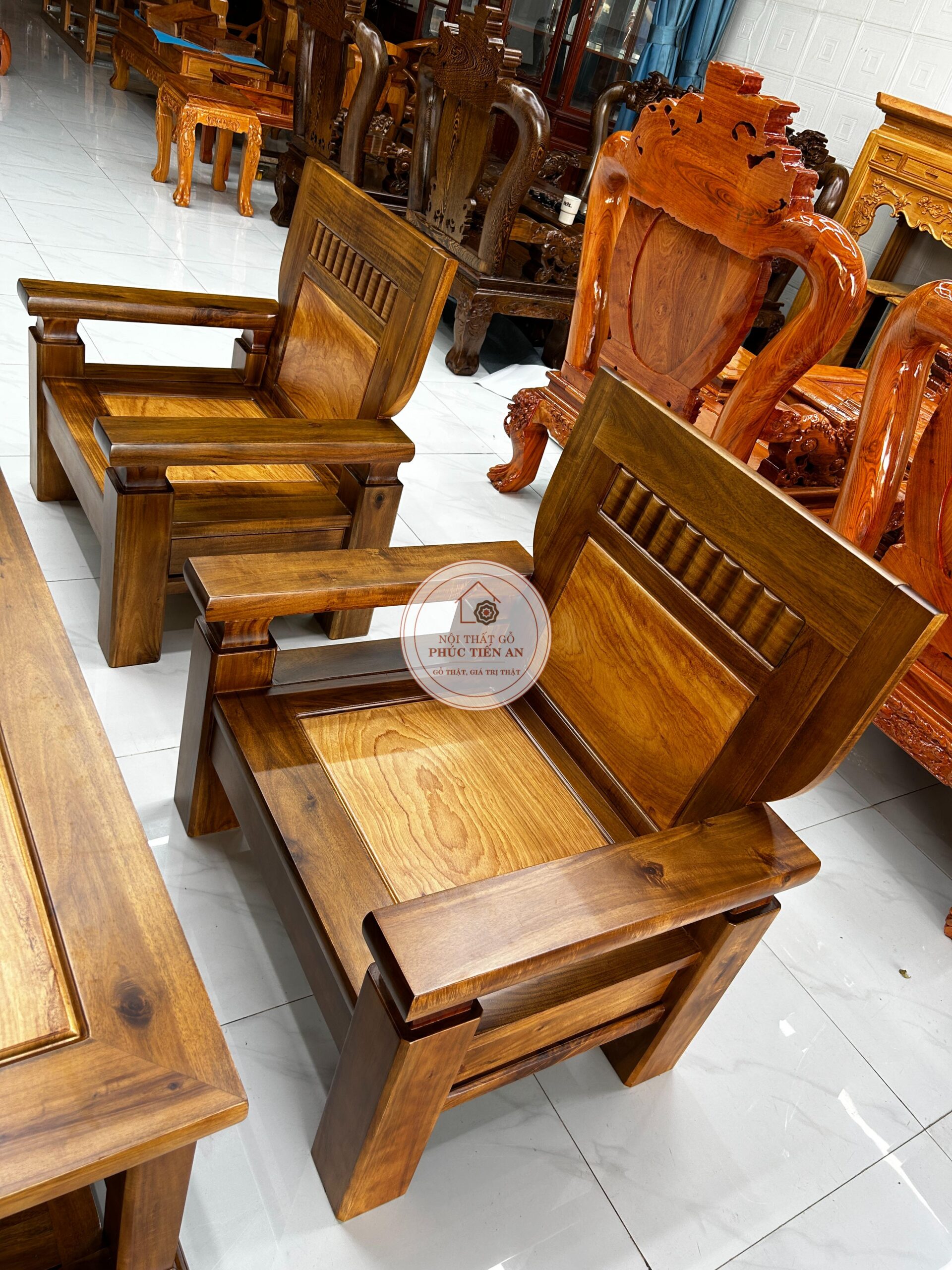 Bộ sa lông gỗ Tràm mặt Gõ thích hợp bài trí trong: