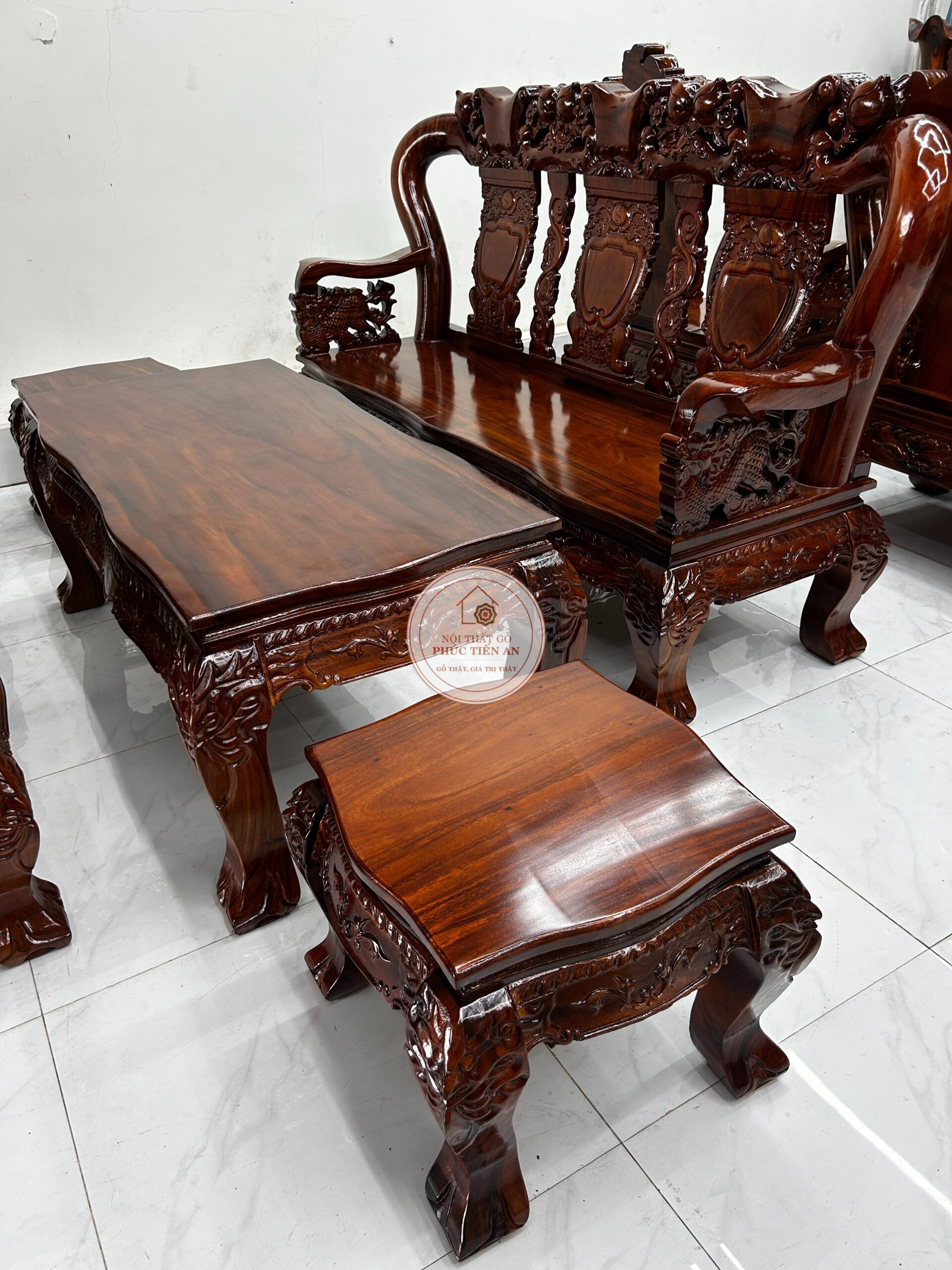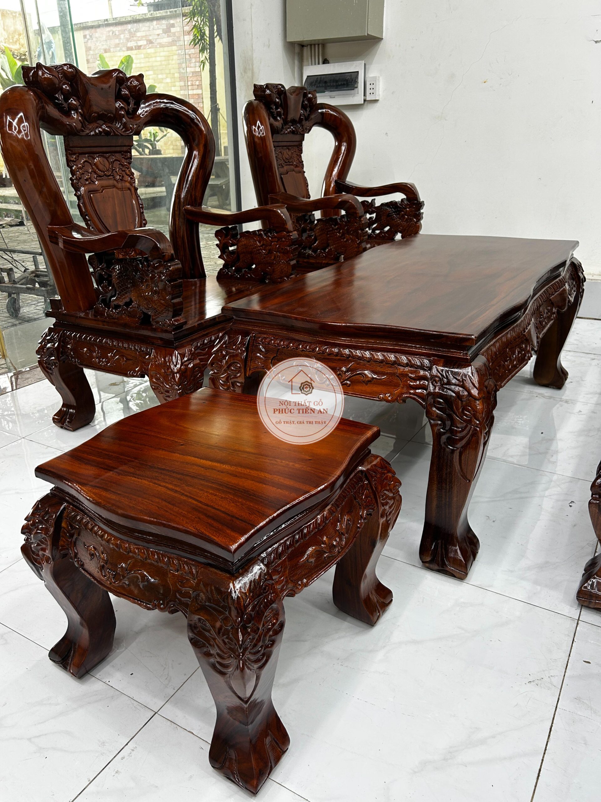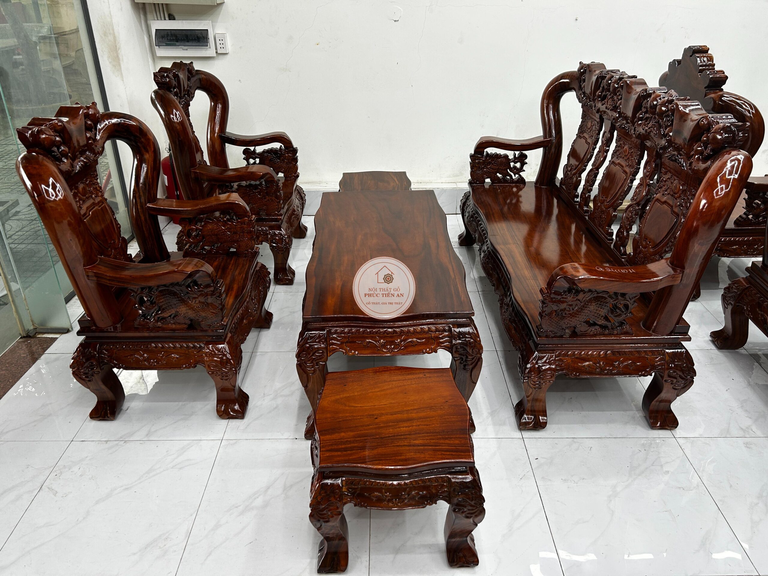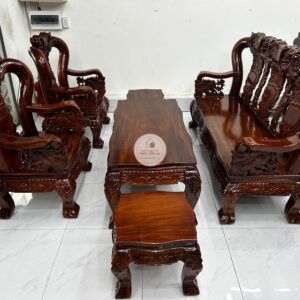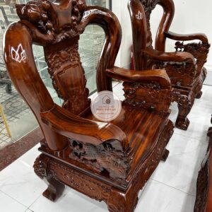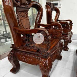 Bộ salon gỗ – Triện 12 Tó Đào Tay Nghê Gỗ Me Tây – Sang Trọng, Bền Đẹp Theo Thời Gian