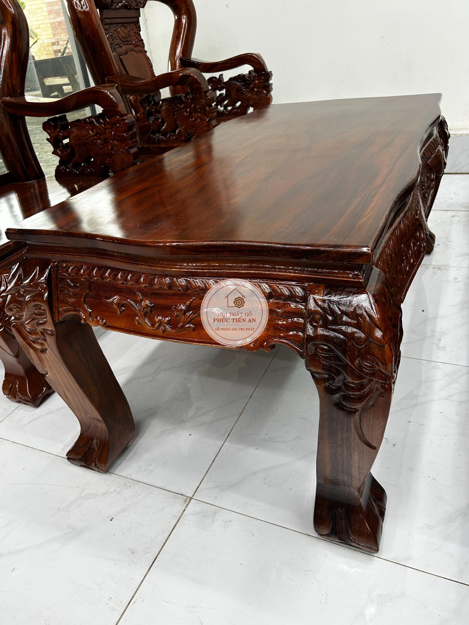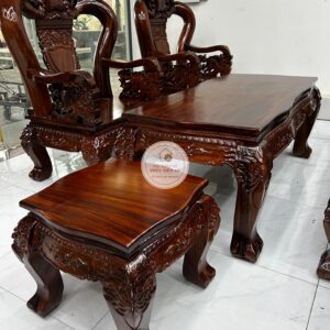 Bộ Salon Gỗ – Triện 12 Tó Đào Tay Nghê Gỗ Me Tây Thiết kế Triện 12 – Tay Nghê Tó Đào đầy uy nghi: