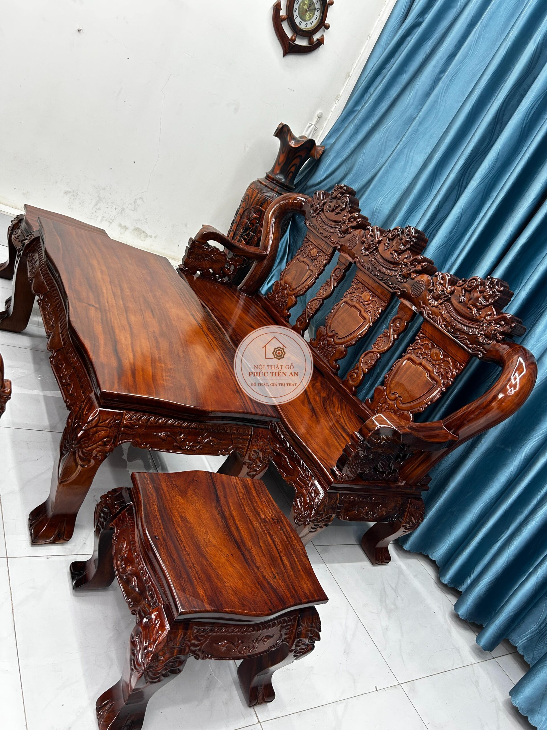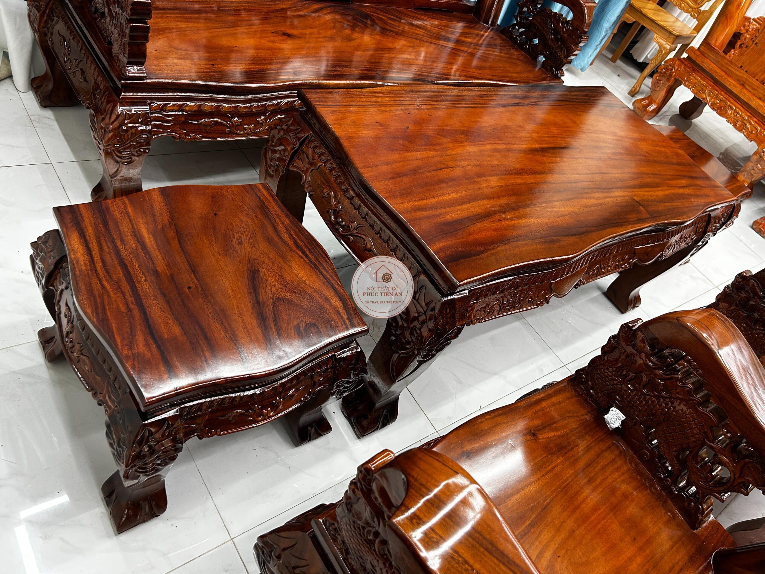 Mặt bàn Bộ Salon gỗ – Triện 12 Tó nghê tay nghê liền tấm – vân gỗ đẹp ấn tượng: