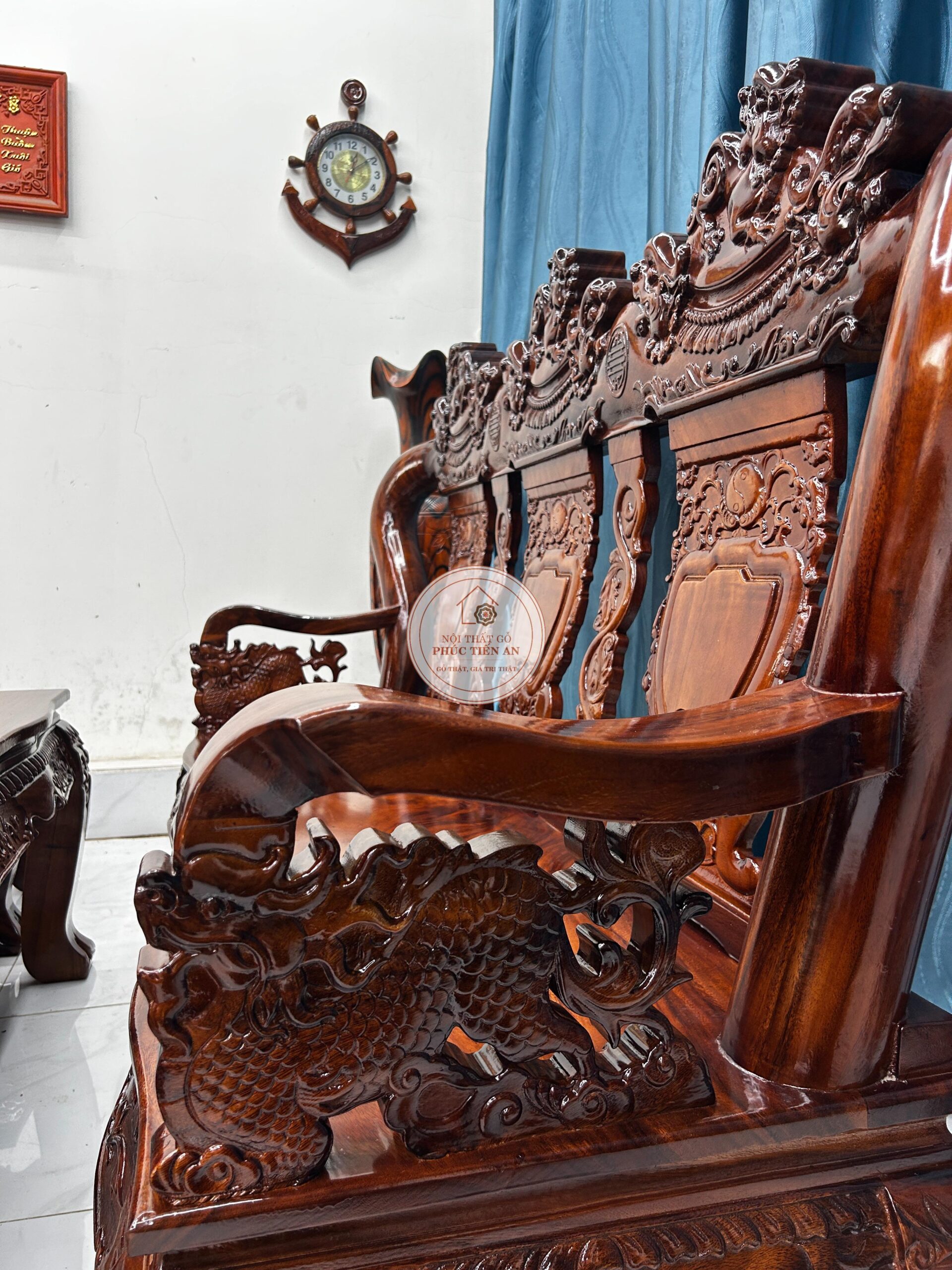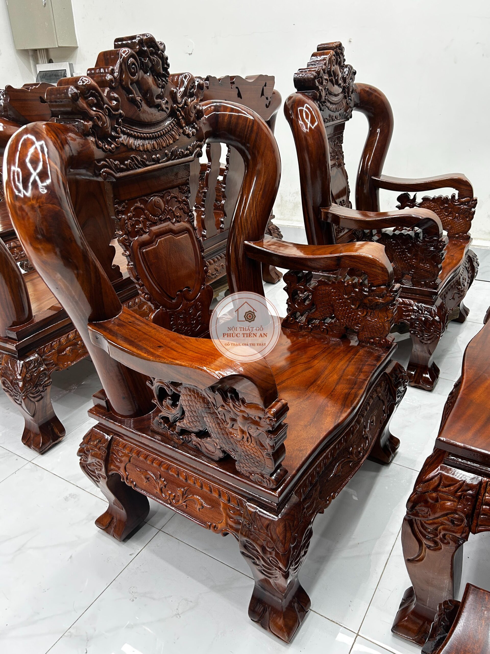 Bộ Salon gỗ – Triện 12 Tó nghê tay nghê Hoàn thiện bằng sơn PU bóng cao cấp: