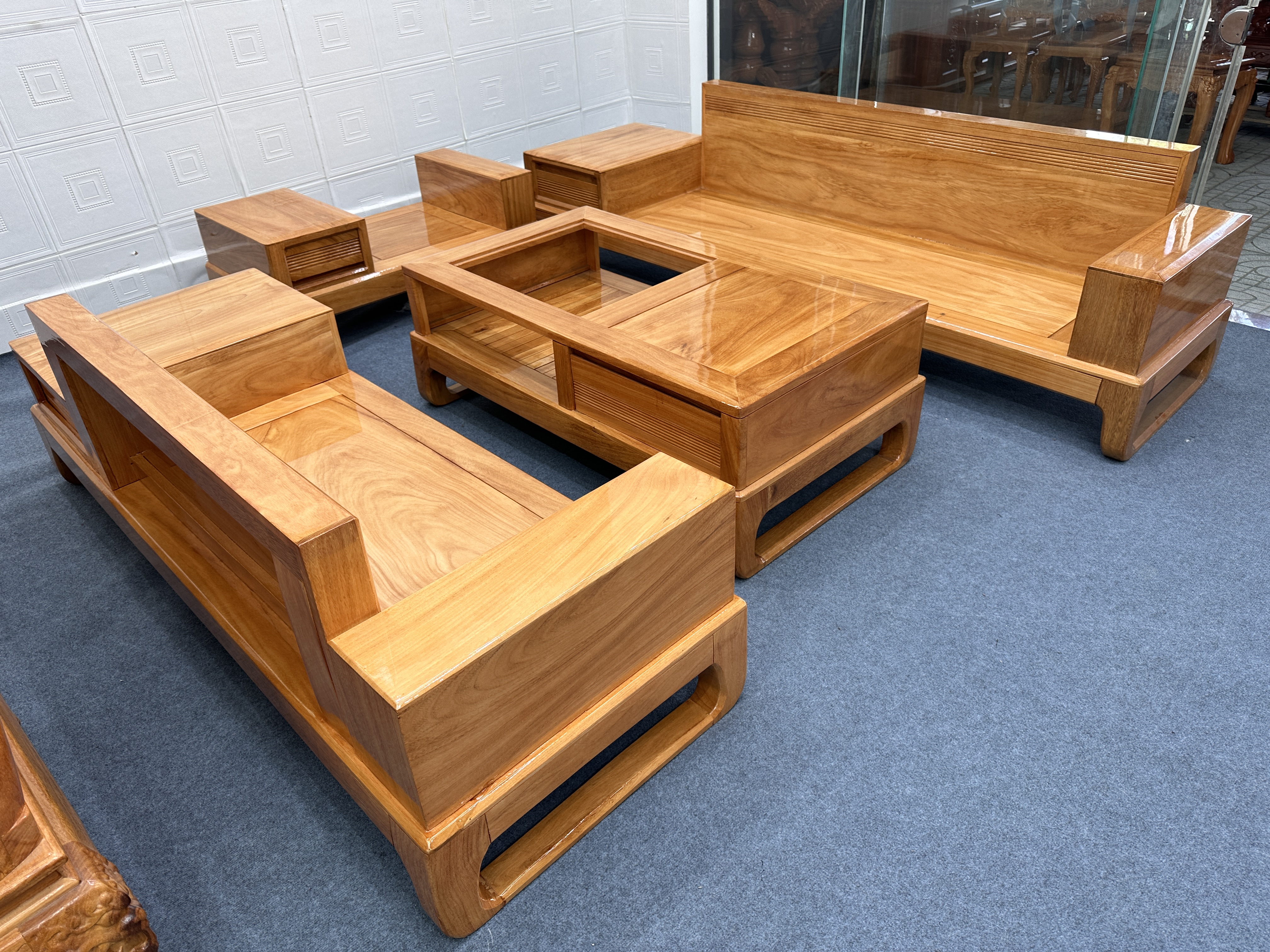 Bộ sofa gỗ/ góc gỗ gõ 2 băng đẹp, hiện đại, phù hợp với mọi không gian