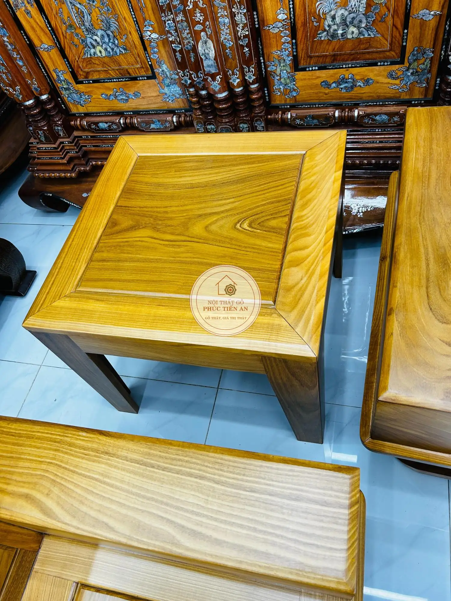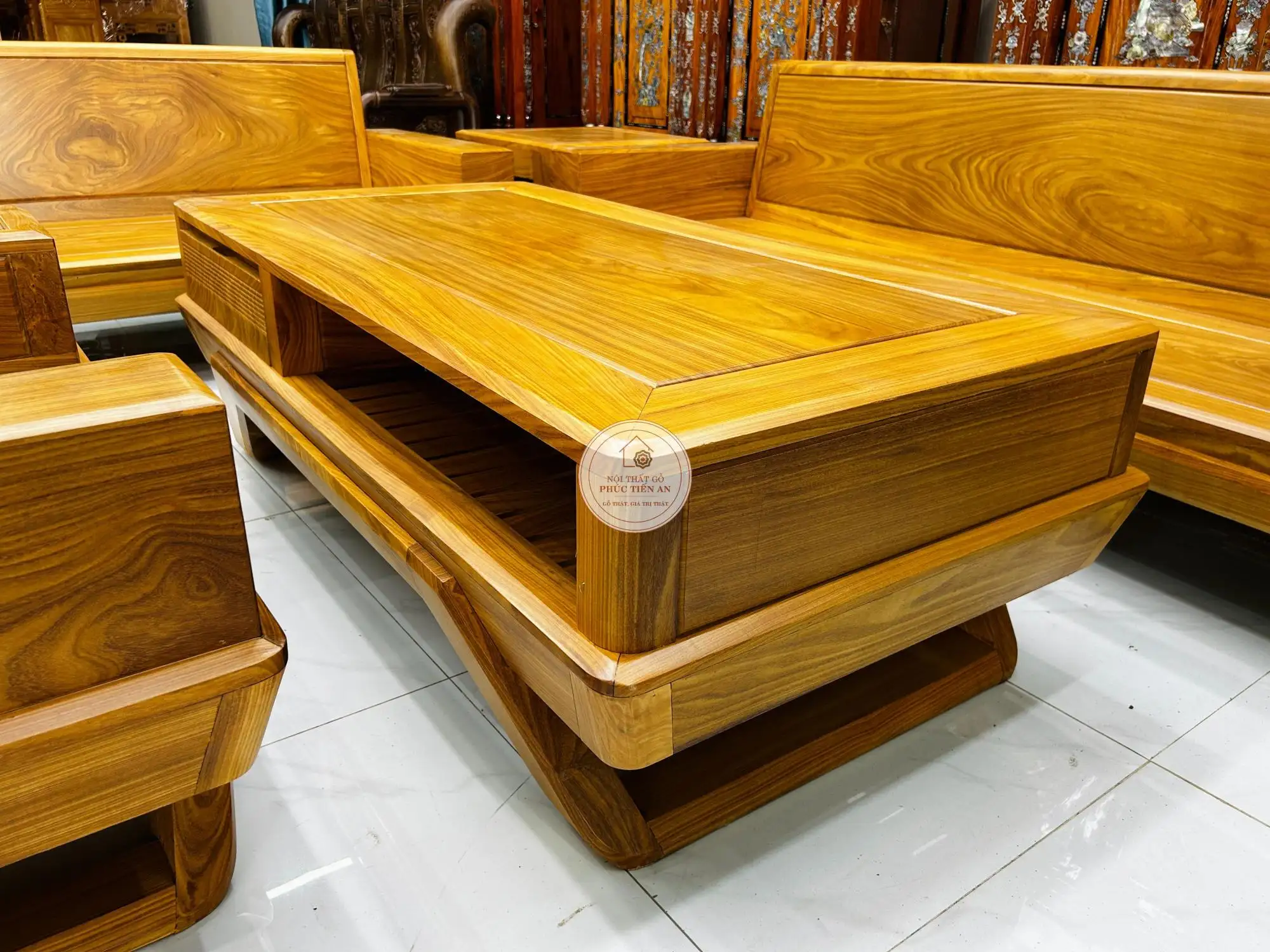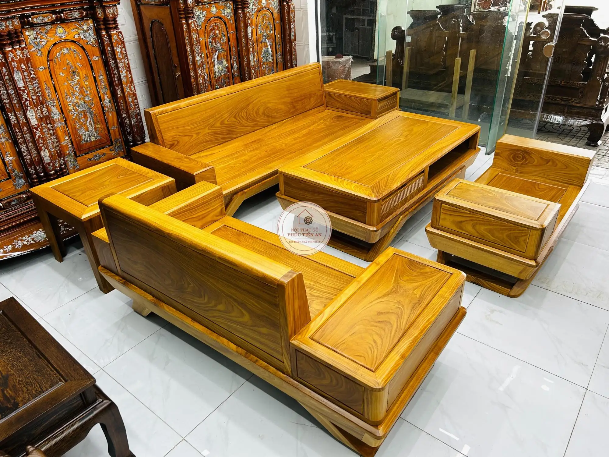 Bộ Salon phòng khách – Salon 2 băng gỗ Cẩm vàng sử dụng chất gỗ đẹp, màu vàng óng tự nhiên, đường vân sắc nét nổi bật trên từng bề mặt, mang đến vẻ sang trọng và giá trị thẩm mỹ cao.