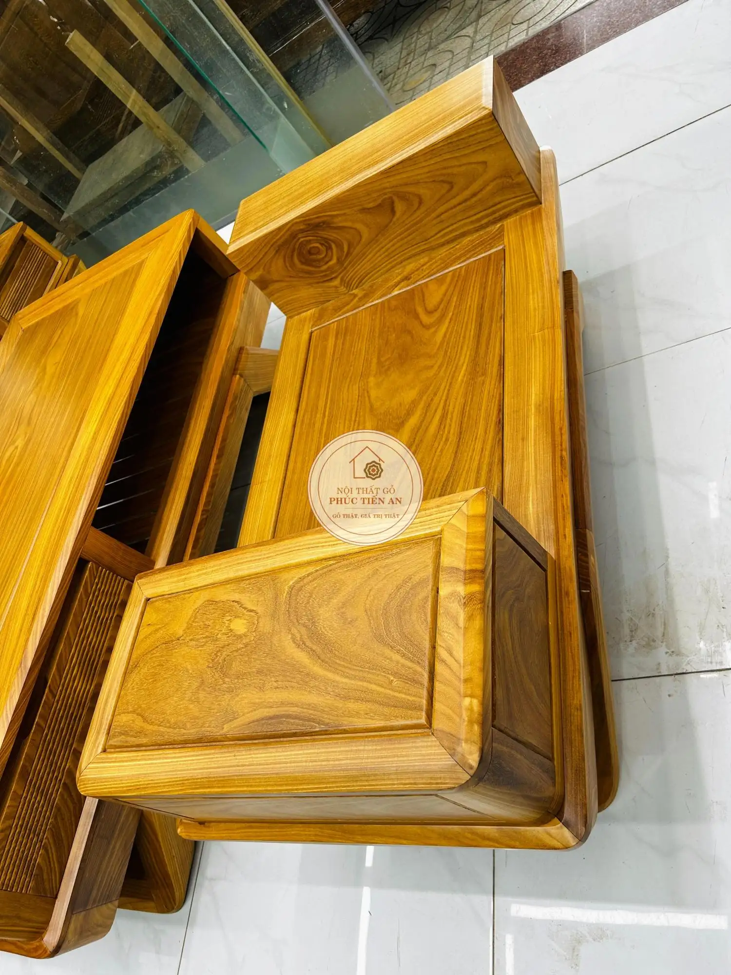 Thiết kế đóng dày dặn, kiểu dáng vững chãi giúp bộ Salon phòng khách – Salon 2 băng gỗ Cẩm vàng bền đẹp theo thời gian.